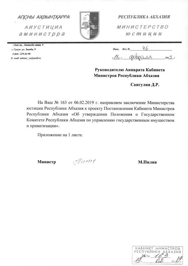 Постановление Кабинета Министров Республики Абхазия от 28.02.2019 №31 "Об утверждении Положения о Государственном комитете Республики Абхазия по управлению государственным имуществом и приватизации"