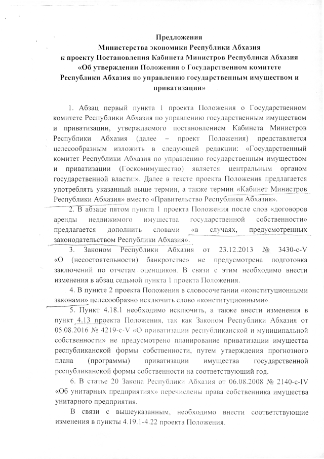 Постановление Кабинета Министров Республики Абхазия от 28.02.2019 №31 "Об утверждении Положения о Государственном комитете Республики Абхазия по управлению государственным имуществом и приватизации"