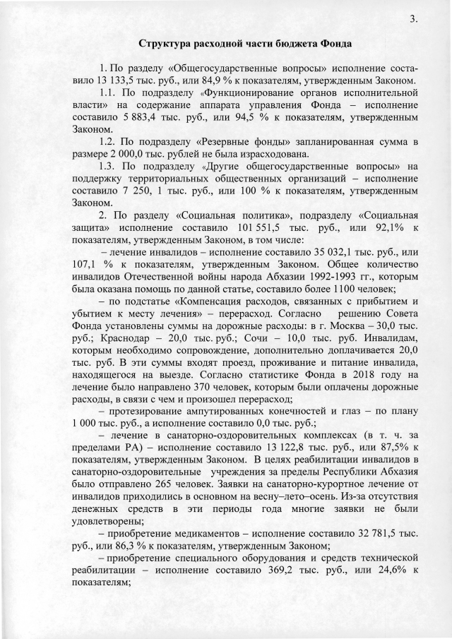 Постановление Кабинета Министров Республики Абхазия от 27.03.2019 №36 "Об исполнении бюджета Государственного внебюджетного фонда инвалидов Отечественной войны народа Абхазии 1992-1993 гг. за 2018 год"