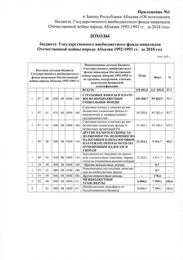 Постановление Кабинета Министров Республики Абхазия от 27.03.2019 №36 "Об исполнении бюджета Государственного внебюджетного фонда инвалидов Отечественной войны народа Абхазии 1992-1993 гг. за 2018 год"
