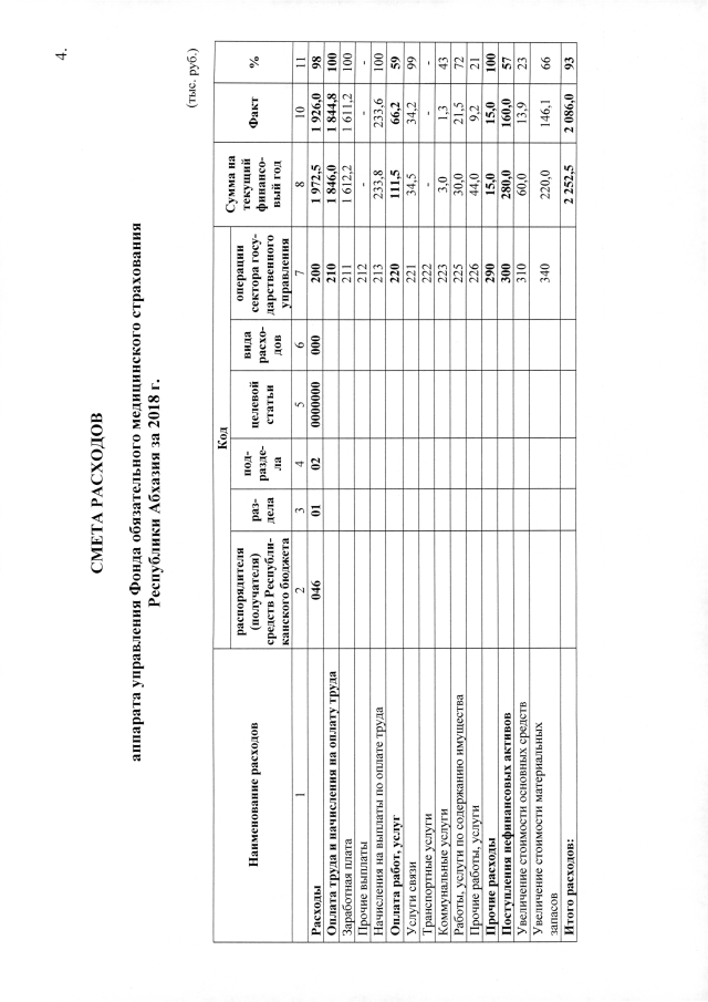 Постановление Кабинета Министров Республики Абхазия от 27.03.2019 №37 "Об исполнении бюджета Фонда обязательного медицинского страхования Республики Абхазия за 2018 год"