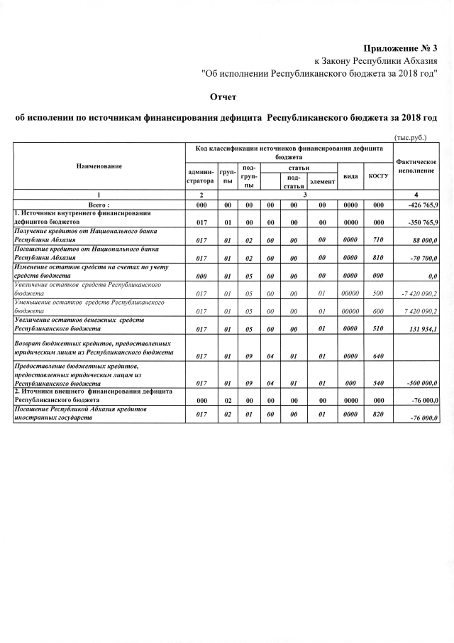 Постановление Кабинета Министров Республики Абхазия от 27.03.2019 №35 "Об исполнении республиканского бюджета за 2018год"