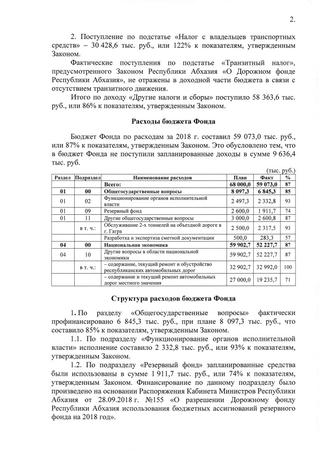 Постановление Кабинета Министров Республики Абхазия от 27.03.2019 №39 "Об исполнении бюджета Дорожного Фонда Республики Абхазия за 2018 год"