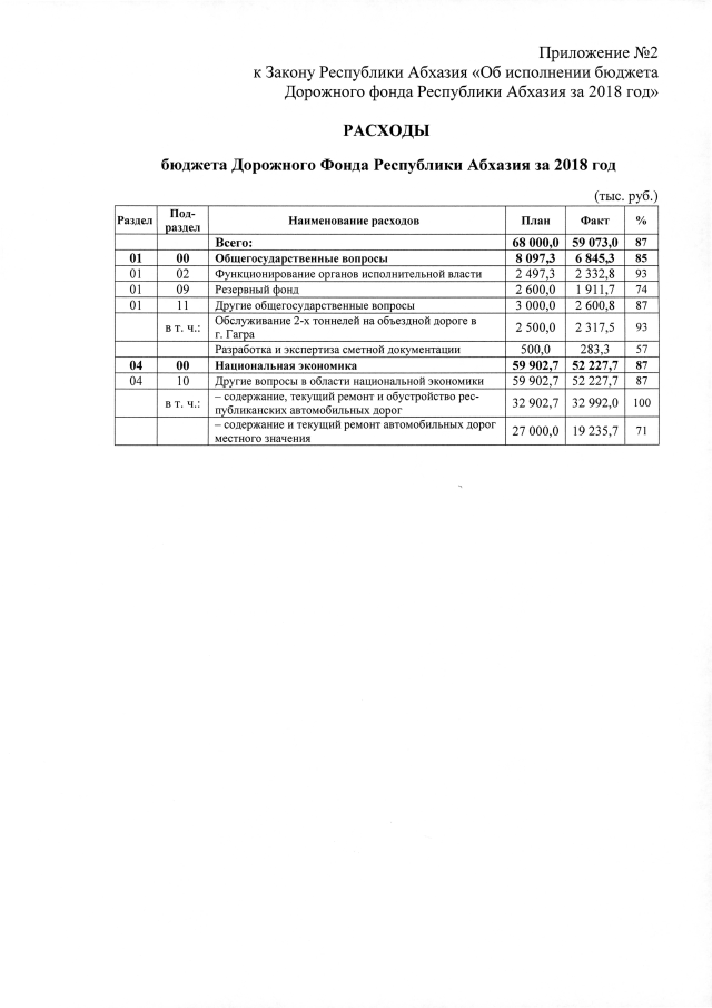 Постановление Кабинета Министров Республики Абхазия от 27.03.2019 №39 "Об исполнении бюджета Дорожного Фонда Республики Абхазия за 2018 год"