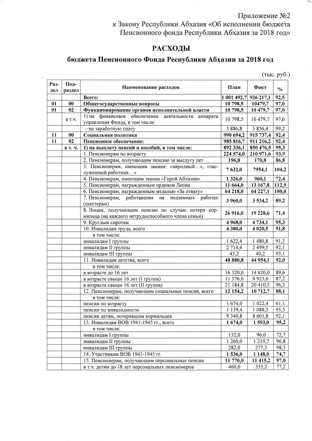 Постановление Кабинета Министров Республики Абхазия от 27.03.2019 №40 "Об исполнении бюджета Пенсионного Фонда Республики Абхазия за 2018 год"