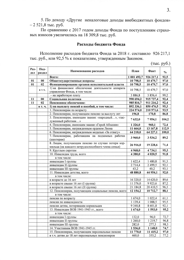 Постановление Кабинета Министров Республики Абхазия от 27.03.2019 №40 "Об исполнении бюджета Пенсионного Фонда Республики Абхазия за 2018 год"