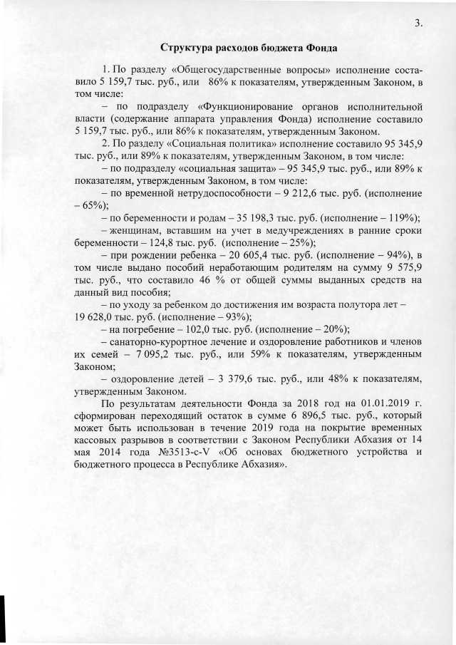 Постановление Кабинета Министров Республики Абхазия от 27.03.2019 №41 "Об исполнении бюджета Фонда социального страхования и охраны труда Республики Абхазия за 2018 года"