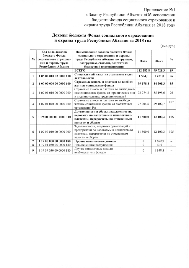 Постановление Кабинета Министров Республики Абхазия от 27.03.2019 №41 "Об исполнении бюджета Фонда социального страхования и охраны труда Республики Абхазия за 2018 года"