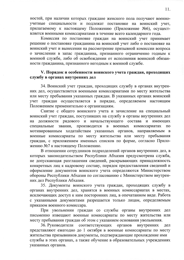 Постановление Кабинета Министров Республики Абхазия от 27.03.2019 №45 "Об утверждении Положения о воинском учете"