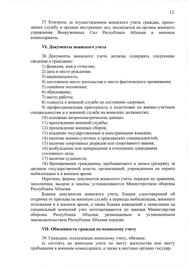 Постановление Кабинета Министров Республики Абхазия от 27.03.2019 №45 "Об утверждении Положения о воинском учете"