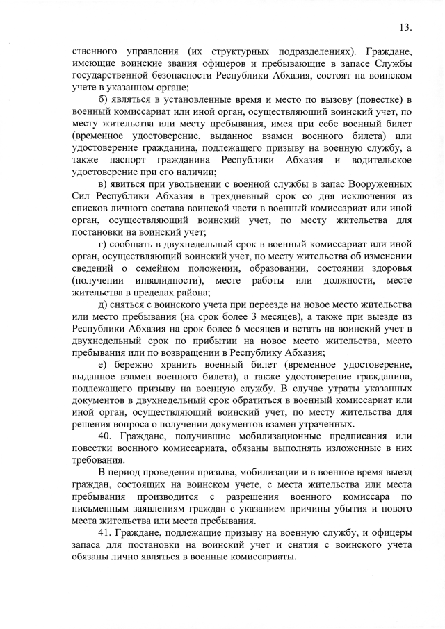 Постановление Кабинета Министров Республики Абхазия от 27.03.2019 №45 "Об утверждении Положения о воинском учете"
