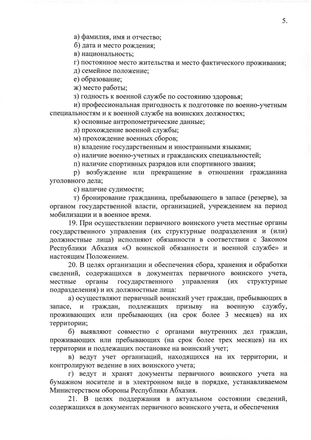Постановление Кабинета Министров Республики Абхазия от 27.03.2019 №45 "Об утверждении Положения о воинском учете"