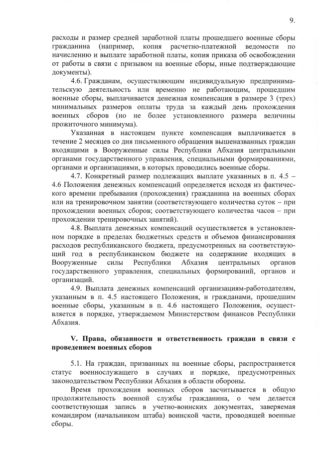Постановление Кабинета Министров Республики Абхазия от 27.03.2019 №46 "Об утверждении Положения о порядке проведения военных сборов граждан Республики Абхазия"