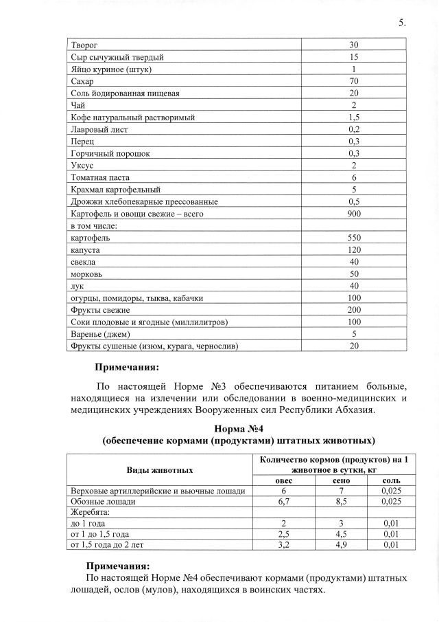 Постановление Кабинета Министров Республики Абхазия от 27.03.2019 №47 "Об утверждении Положения о продовольственном обеспечении военнослужащих и гражданского персонала Министерства обороны Республики Абхазия, обеспечении оборудованием и инвентарем продовольственной службы, а также кормами (продуктами) штатных животных в мирное время и Норм выдачи продовольствия общевойскового, лётного, лечебного, индивидуального пайка военнослужащим и гражданскому персоналу Министерства обороны Республики Абхазия, а также кормов (продуктов) штатным животным в мирное время> "