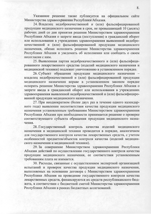 Постановление Кабинета Министров Республики Абхазия от 27.03.2019 №49 "Об утверждении Порядка осуществления государственного контроля качества лекарственных средств, изделий медицинского назначения и медицинской техники и Порядка ввоза на территорию Республики Абхазия лекарственных средств, изделий медицинского назначения и медицинской техники"