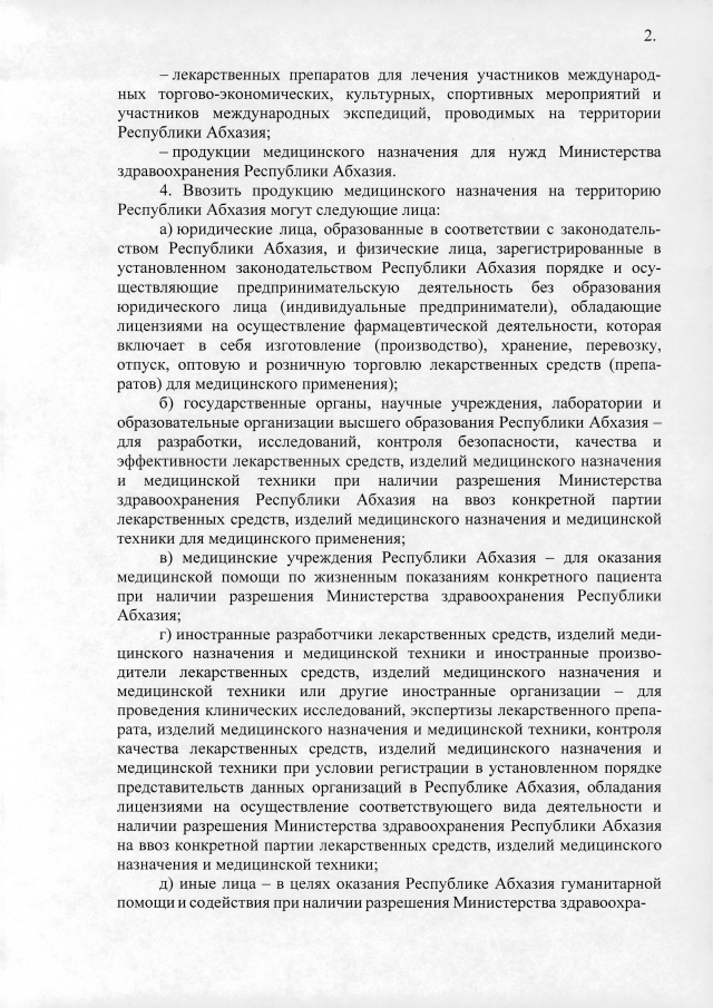 Постановление Кабинета Министров Республики Абхазия от 27.03.2019 №49 "Об утверждении Порядка осуществления государственного контроля качества лекарственных средств, изделий медицинского назначения и медицинской техники и Порядка ввоза на территорию Республики Абхазия лекарственных средств, изделий медицинского назначения и медицинской техники"