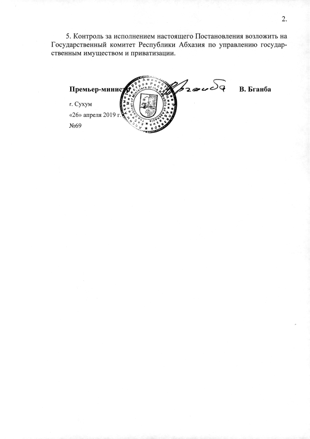Постановление Кабинета Министров Республики Абхазия от 26.04.2019 №69 "О внесении изменений в Постановление Кабинета Министров Республики Абхазия от 06.06.2002 г. №117 "О порядке оформления разграничения государственной собственности и формирования Реестра собственности""