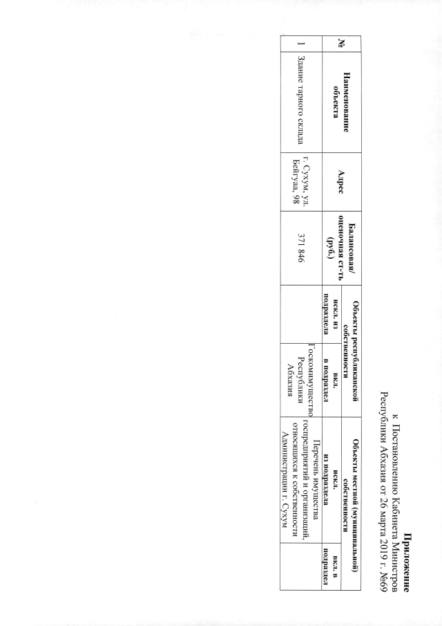 Постановление Кабинета Министров Республики Абхазия от 26.04.2019 №69 "О внесении изменений в Постановление Кабинета Министров Республики Абхазия от 06.06.2002 г. №117 "О порядке оформления разграничения государственной собственности и формирования Реестра собственности""