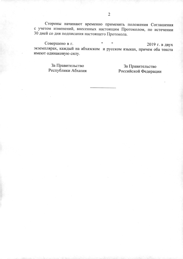 Постановление Кабинета Министров Республики Абхазия от 17.05.2019 №88 " О проекте Протокола о внесении изменений в Соглашение между Правительством Республики Абхазия и Правительством Российской Федерации о режиме торговли товарами от 28 мая 2012 года "