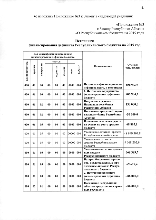 Постановление Кабинета Министров Республики Абхазия от 31.05.2019 №89 "О проекте Закона Республики Абхазия <О внесении изменений в Закон <О Республиканском бюджете на 2019 год>"