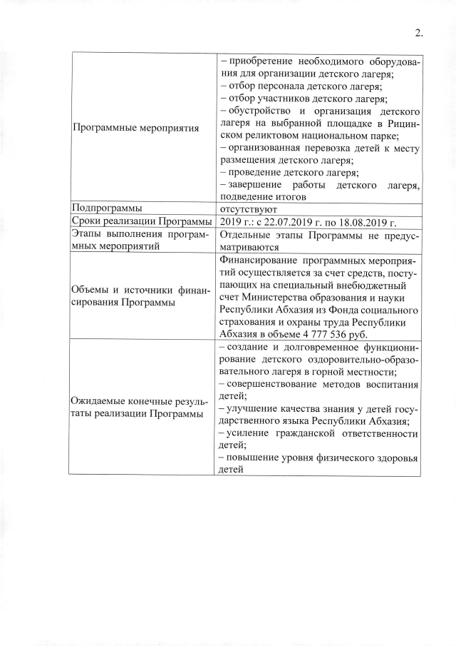 Постановление Кабинета Министров Республики Абхазия от 18.06.2019 №98 "Об утверждении межведомственной целевой программы <Детский лагерь <Ажэеипшьаа-2019>"