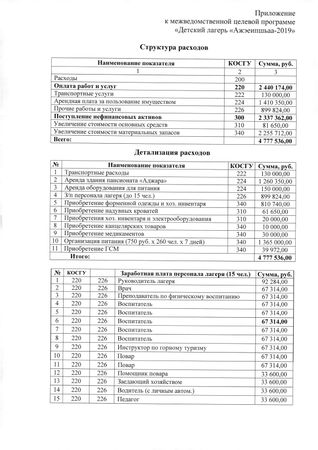 Постановление Кабинета Министров Республики Абхазия от 18.06.2019 №98 "Об утверждении межведомственной целевой программы <Детский лагерь <Ажэеипшьаа-2019>"
