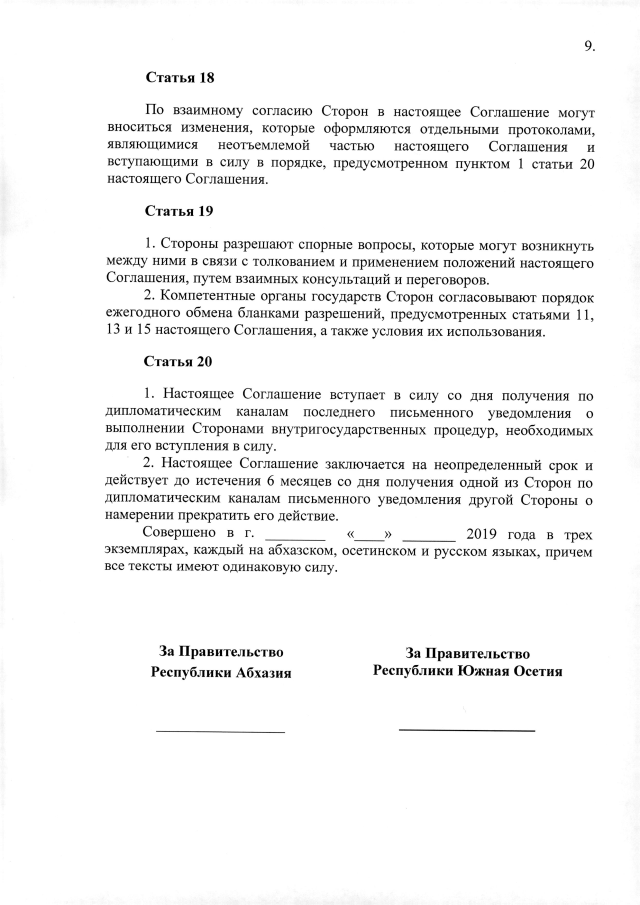 Постановление Кабинета Министров Республики Абхазия от 31.05.2019 №90 "О заключении Соглашения между Правительством Республики Абхазия и Правительством Республики Южная Осетия о международном автомобильном сообщении"