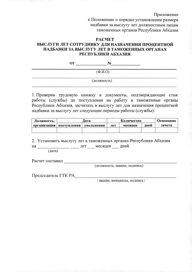 Постановление Кабинета Министров Республики Абхазия от 31.05.2019 №92 "Об утверждении Положения о порядке исчисления оклада по занимаемой должности и размера надбавки за выслугу лет должностным лицам таможенных органов Республики Абхазия "