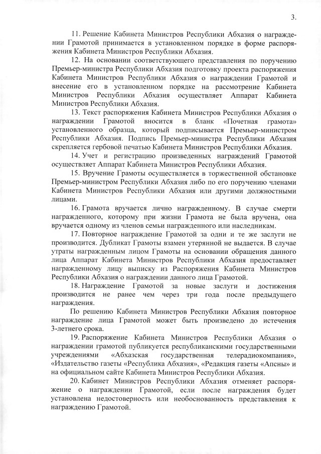 Постановление Кабинета Министров Республики Абхазия от 28.06.2019 №102 "О Почетной грамоте Кабинета Министров Республики Абхазия"