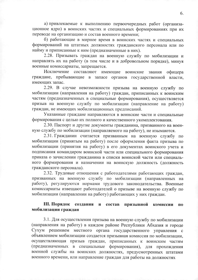 Постановление Кабинета Министров Республики Абхазия от 28.06.2019 №100 "Об утверждении Положения о призыве на военную службу по мобилизации граждан, приписанных к воинским частям (предназначенных в специальные формирования и органы), для прохождения военной службы на воинских должностях, предусмотренных штатами военного времени, или направления их для работы на должностях гражданского персонала Вооруженных Сил Республики Абхазия, специальных формирований и органов, создаваемых в военное время"