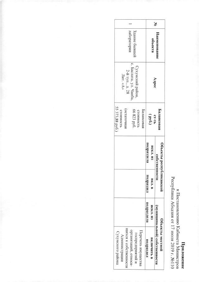 Постановление Кабинета Министров Республики Абхазия от 17.07.2019 №110 "О внесении изменений в Постановление Кабинета Министров Республики Абхазия от 6 июня 2002 года №117 <О порядке оформления разграничения государственной собственности и формирования Реестра собственности>"