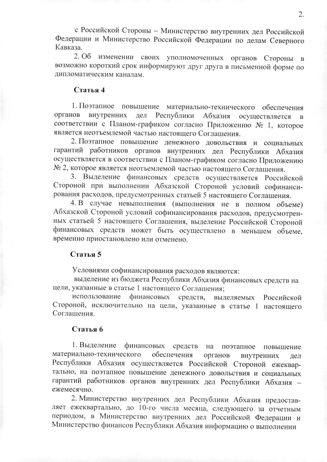 Постановление Кабинета Министров Республики Абхазия от 29.07.2019 №113 "О представлении Президенту Республики Абхазия предложения о подписании Соглашения между Республикой Абхазия и Российской Федерацией о софинансировании расходов на поэтапное повышение материально-технического обеспечения органов внутренних дел Республики Абхазия, денежного довольствия и социальных гарантий работников органов внутренних дел Республики Абхазия"