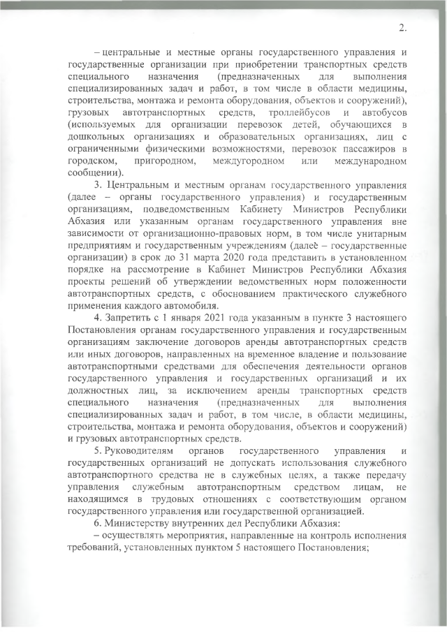 Постановление Кабинета Министров Республики Абхазия от 25.12.2019 № 217 "О нормах положенности автотранспортных средств"