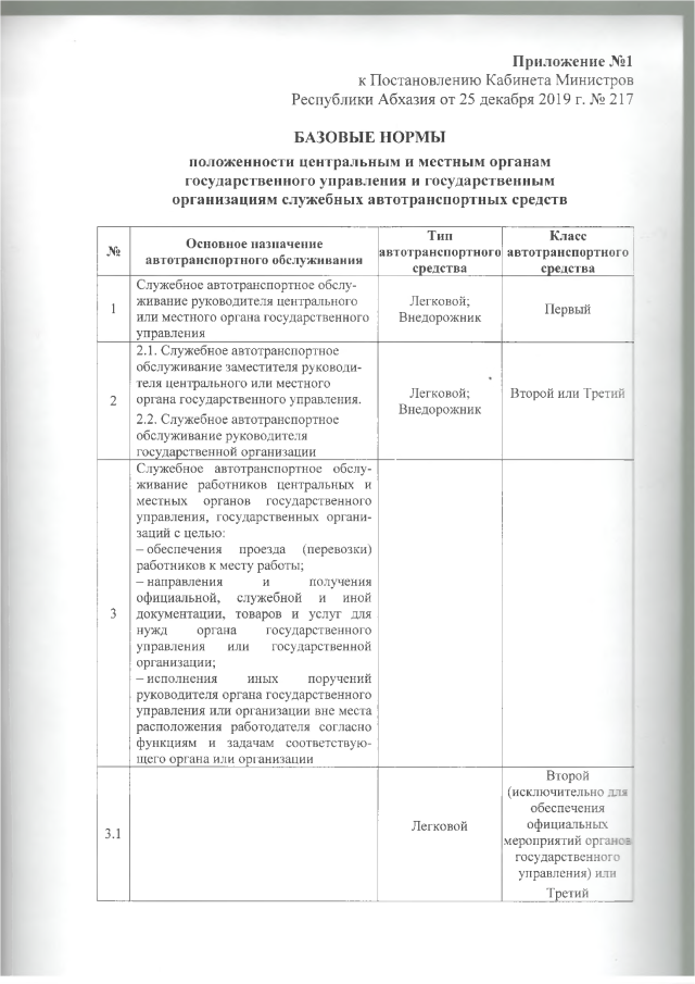 Постановление Кабинета Министров Республики Абхазия от 25.12.2019 № 217 "О нормах положенности автотранспортных средств"