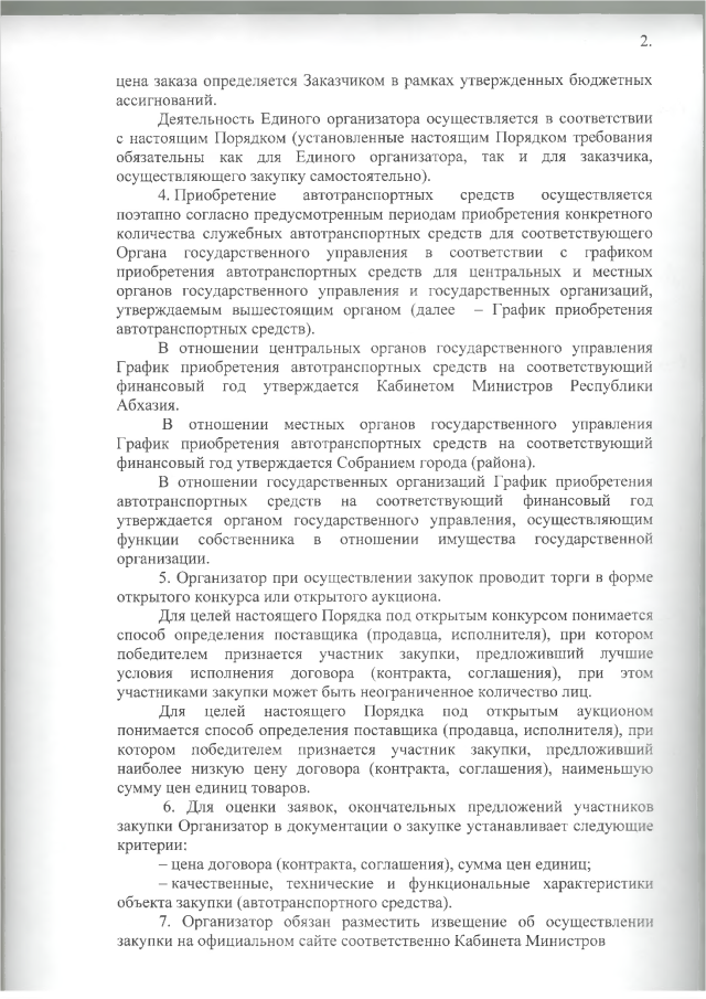 Постановление Кабинета Министров Республики Абхазия от 25.12.2019 № 217 "О нормах положенности автотранспортных средств"