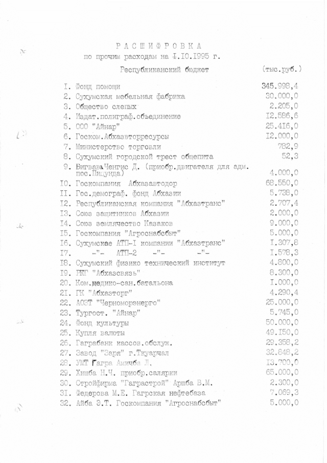 Постановление Кабинета Министров Республики Абхазия от 28.11.1995 № 298 "Об итогах исполнения Государственного бюджета Республики Абхазия за 9 месяцев 1995 года"