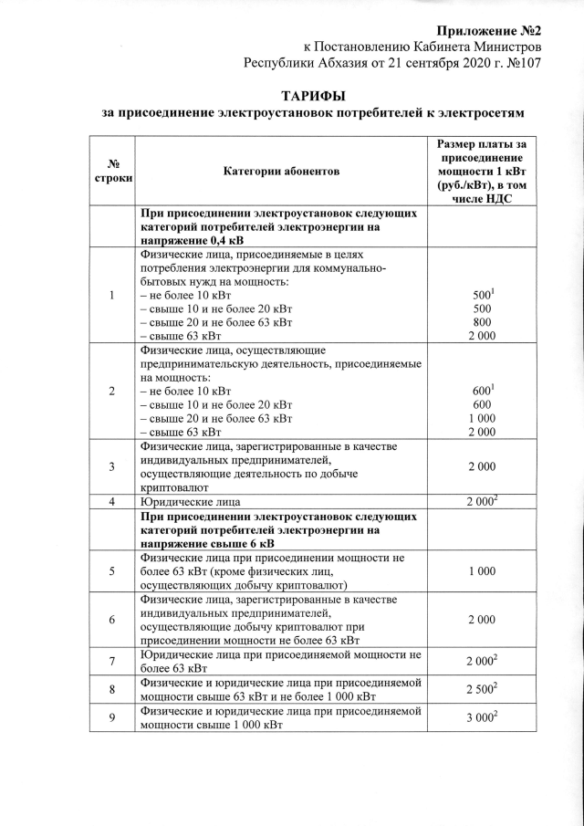 ПОСТАНОВЛЕНИЕ Кабинета Министров Республики Абхазия от 21.09.2020 №107 "О некоторых нормативных правовых актах в сфере электроэнергетики"