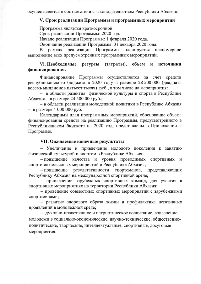 Постановление Кабинета Министров Республики Абхазия от 13.02.2020 №15 "Об утверждении ведомственной целевой программы на 2020 год <Развитие физической культуры, спорта и реализация молодежной политики в Республике Абхазия>"