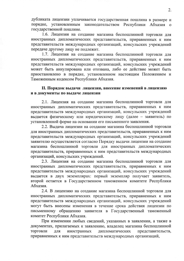 Постановление Кабинета Министров Республики Абхазия от 20.02.2020 №17 "Об утверждении Порядка выдачи лицензии и Положения о выдаче лицензии на создание магазина беспошлинной торговли для иностранных дипломатических представительств, приравненных к ним представительств международных организаций, консульских учреждений"