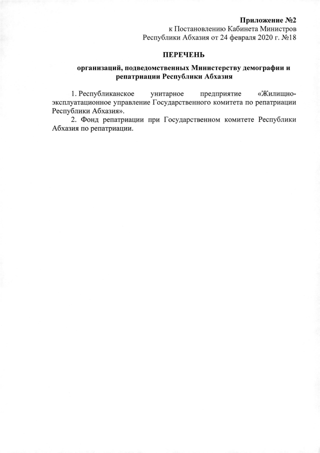 Постановление Кабинета Министров Республики Абхазия от 24.02.2020 №18 "Об утверждении Положения о Министерстве демографии и репатриации Республики Абхазия"