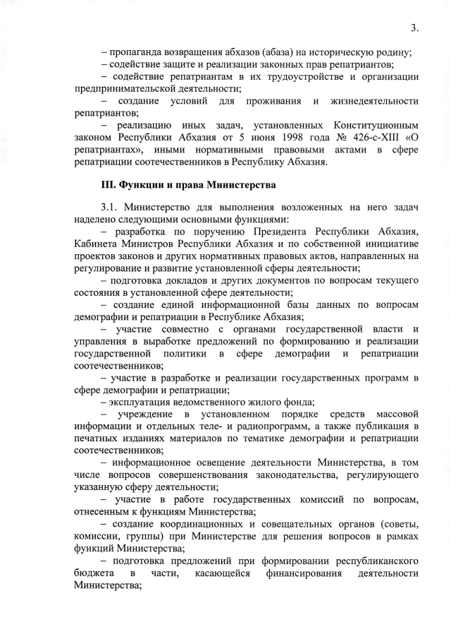 Постановление Кабинета Министров Республики Абхазия от 24.02.2020 №18 "Об утверждении Положения о Министерстве демографии и репатриации Республики Абхазия"