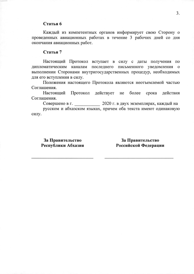 Постановление Кабинета Министров Республики Абхазия от 26.02.2020 №20 "О проекте Протокола к Соглашению между Правительством Республики Абхазия и Правительством Российской Федерации о сотрудничестве в области предупреждения и ликвидации чрезвычайных ситуаций от 17 февраля 2010 года"