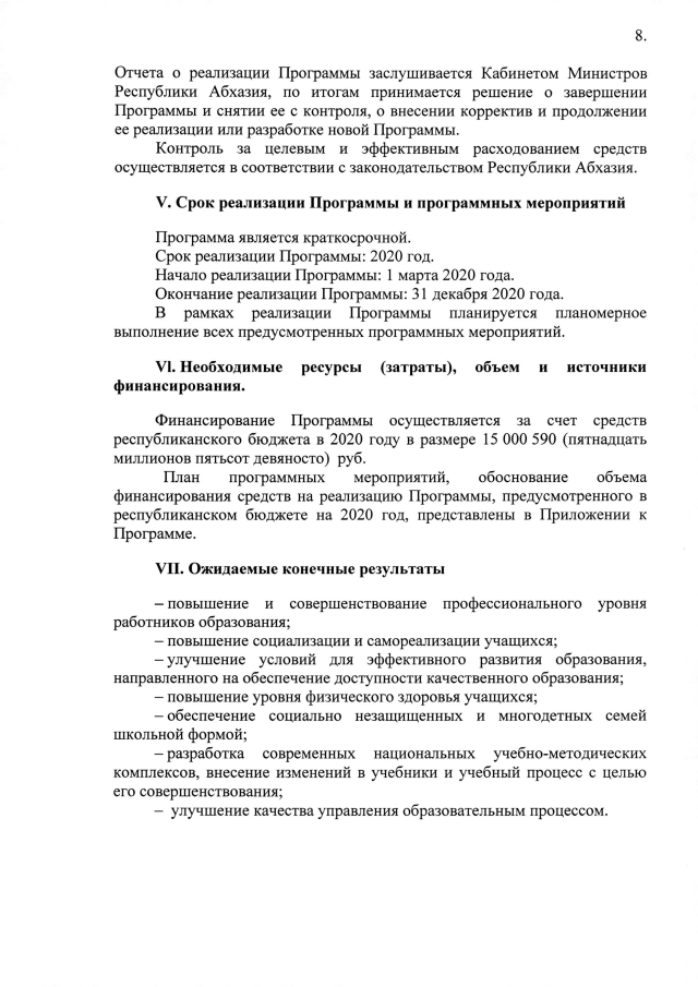 Постановление Кабинета Министров Республики Абхазия от 26.02.2020 №21 "Об утверждении ведомственной целевой программы на 2020 год "Развитие образования-2020""