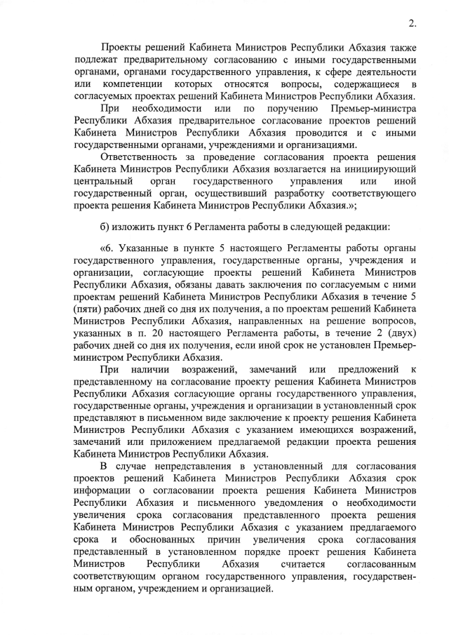 Постановление Кабинета Министров Республики Абхазия от 31.01.2020 №3 "О внесении изменений в Регламент работы Кабинета Министров Республики Абхазия, утвержденный Постановлением Кабинета Министров Республики Абхазия от 30 июля 2010 года №130"