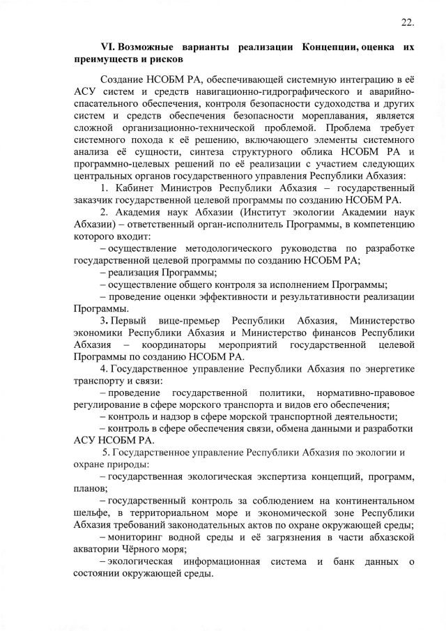Постановление Кабинета Министров Республики Абхазия от 18.03.2020 №38 "Об утверждении Концепции национальной системы обеспечения безопасности мореплавания Республики Абхазия"