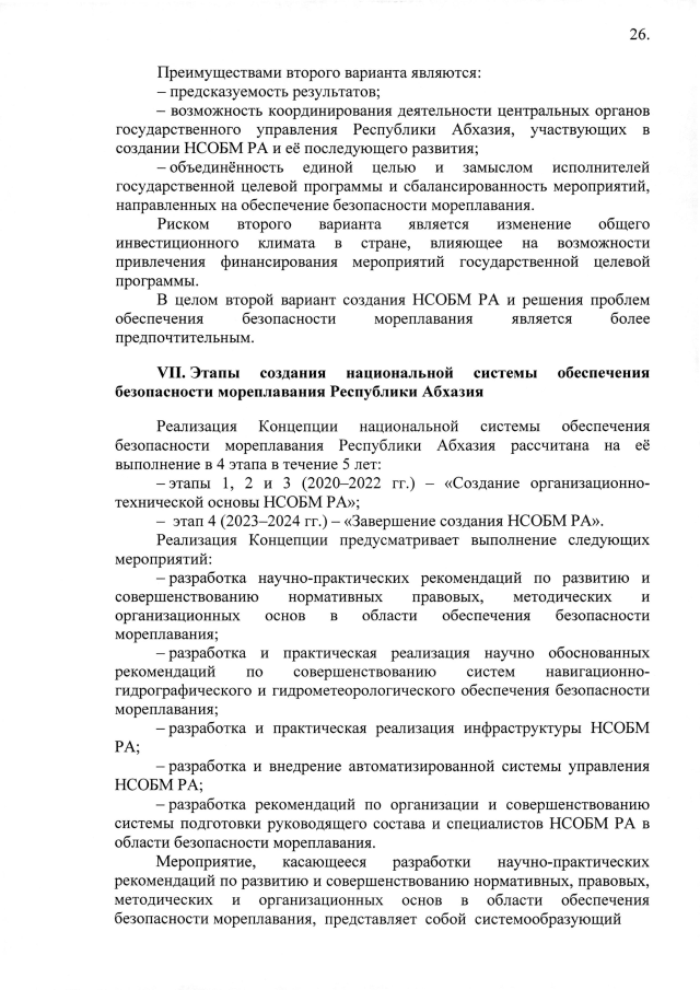 Постановление Кабинета Министров Республики Абхазия от 18.03.2020 №38 "Об утверждении Концепции национальной системы обеспечения безопасности мореплавания Республики Абхазия"