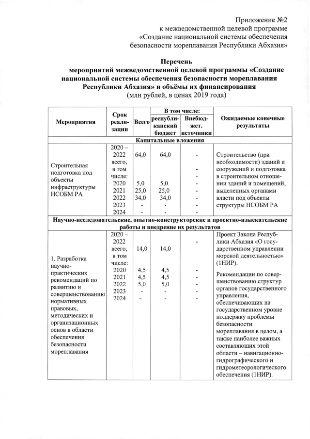 Постановление Кабинета Министров Республики Абхазия от 18.03.2020 №39 "Об утверждении межведомственной целевой программы на 2020-2024 годы "Создание национальной системы обеспечения безопасности мореплавания Республики Абхазия""