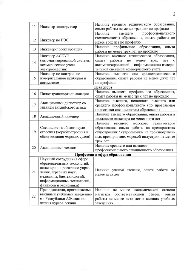 Постановление Кабинета Министров Республики Абхазия от 31.01.2020 №4 "Об утверждении перечня профессий, квалификаций и требований к ним, представляющих особый государственный интерес для Республики Абхазия"