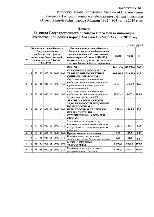 Постановление Кабинета Министров Республики Абхазия от 27.03.2020 №44 "Об исполнении бюджета Государственного внебюджетного фонда инвалидов Отечественной войны народа Абхазии 1992-1993 гг. за 2019 год"