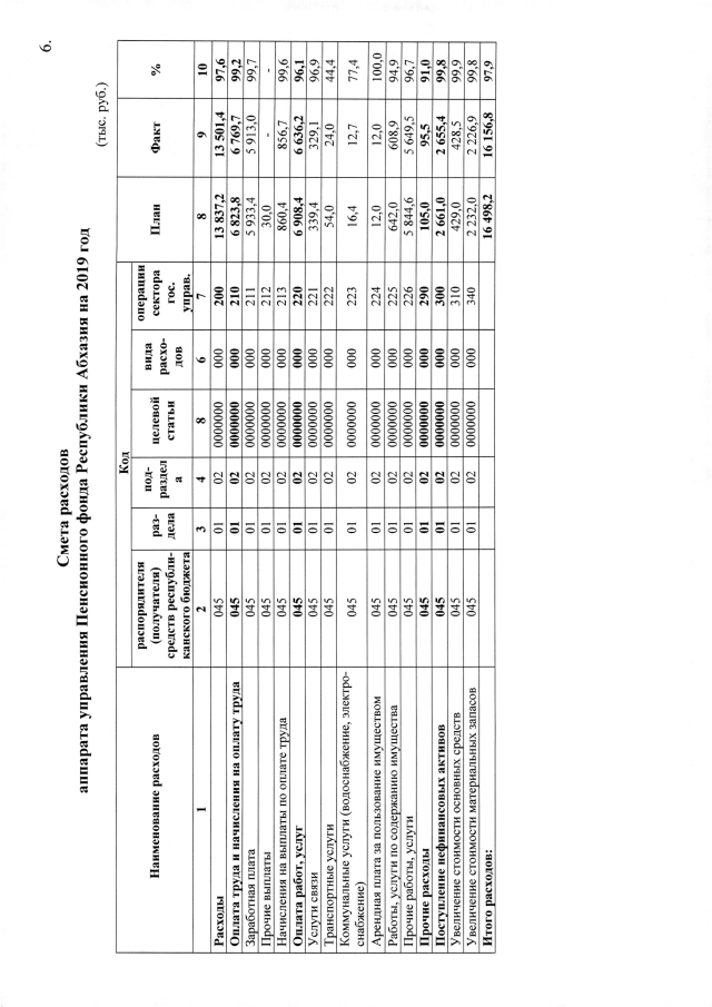 Постановление Кабинета Министров Республики Абхазия от 27.03.2020 №45 "Об исполнении бюджета Пенсионного фонда Республики Абхазия за 2019 год"